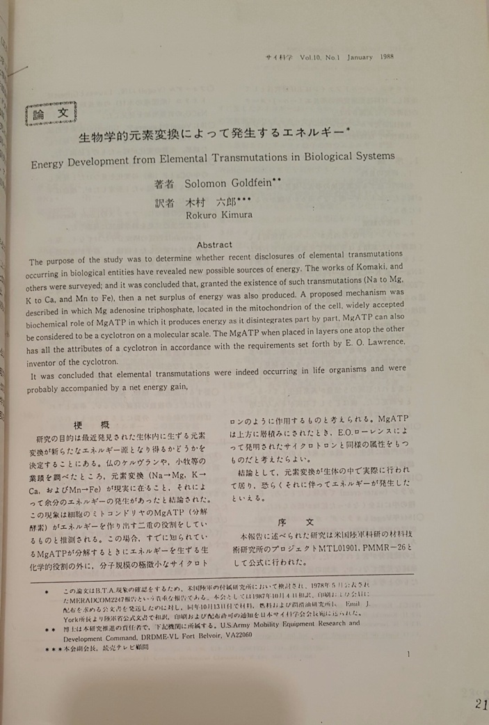 It was concluded thet elemental transmutations were indeed occurring in life organisms and wre probably accompanied by a net enegy gain.